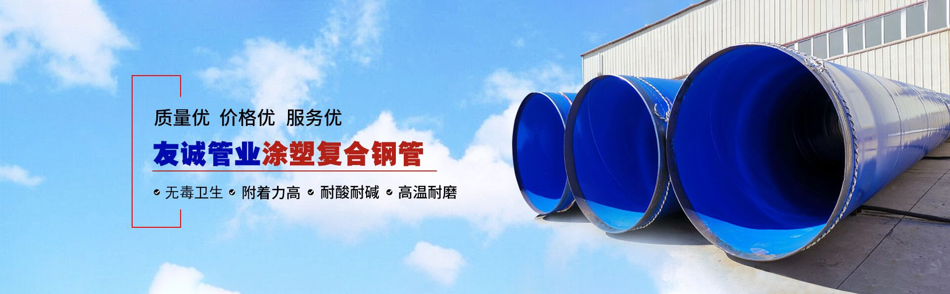 滄州友誠(chéng)管業(yè)有限公司是一家專業(yè)從事生產(chǎn)防腐涂塑管道及管件于一體的大型企業(yè)。公司注冊(cè)資金8600萬元,位于中國(guó)管道生產(chǎn)基地—河北鹽山縣,近靠京滬高速、榮烏高速、黃石高速30公里,高鐵滄州西站40公里,天津國(guó)際機(jī)場(chǎng)、濟(jì)南遙墻機(jī)場(chǎng)150公里,為客戶來訪及業(yè)務(wù)發(fā)展提供了便利的交通條件。        鋼管系列:螺旋鋼管、無縫鋼管、ERW直縫焊管、JCOE埋弧焊直縫鋼管、熱鍍鋅鋼管。        涂塑系列:內(nèi)外涂塑鋼管、涂塑復(fù)合鋼…… 了解更多